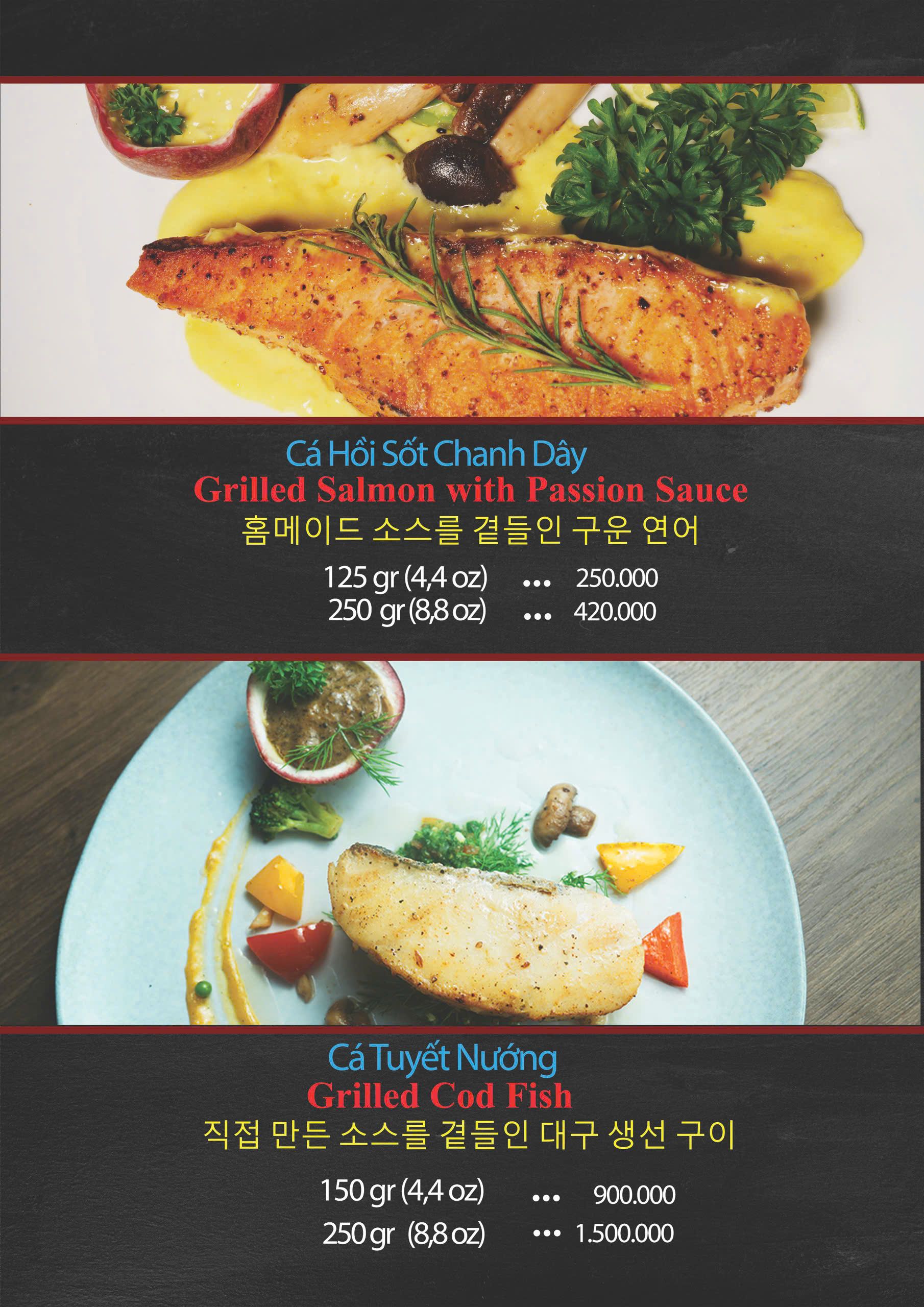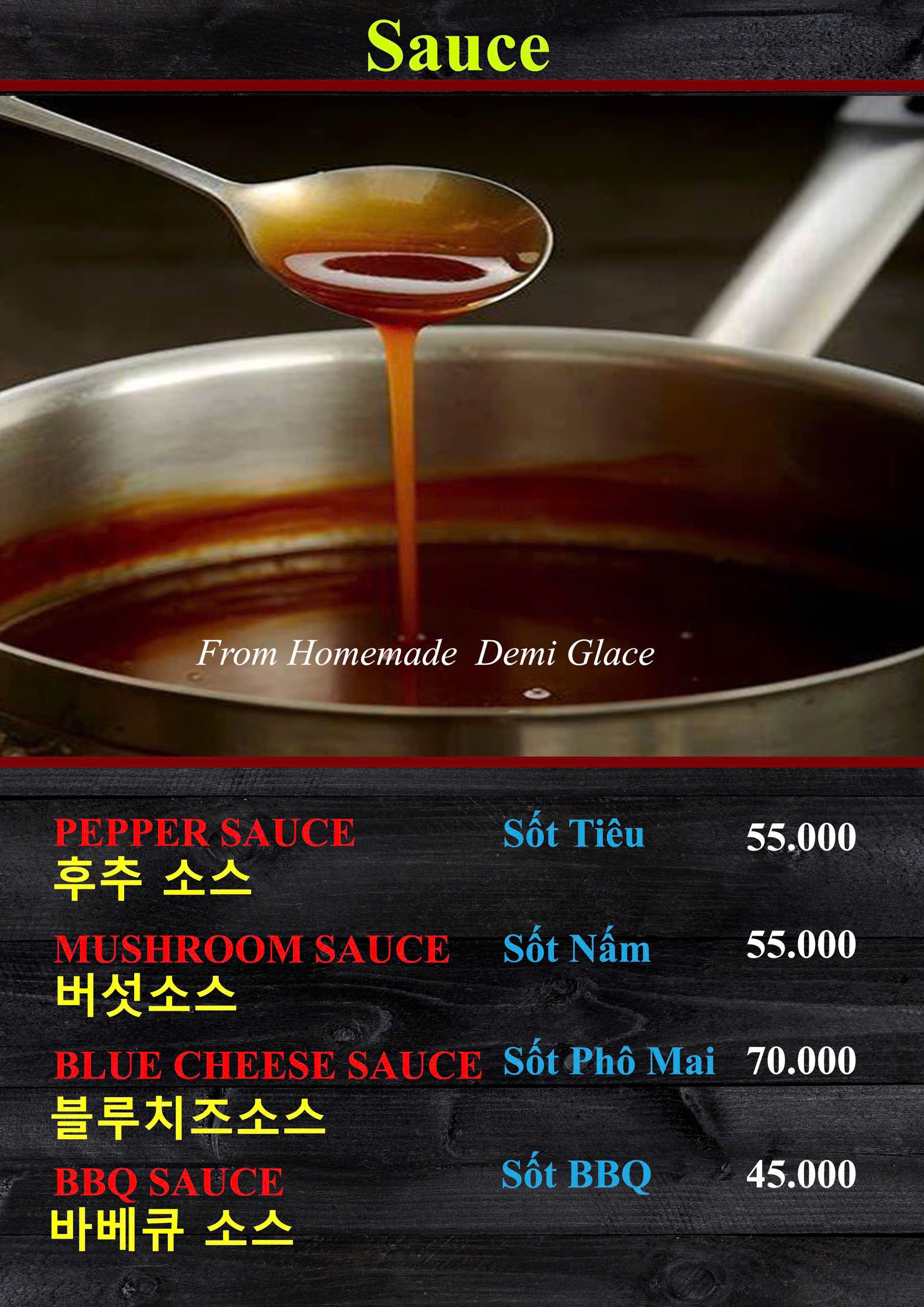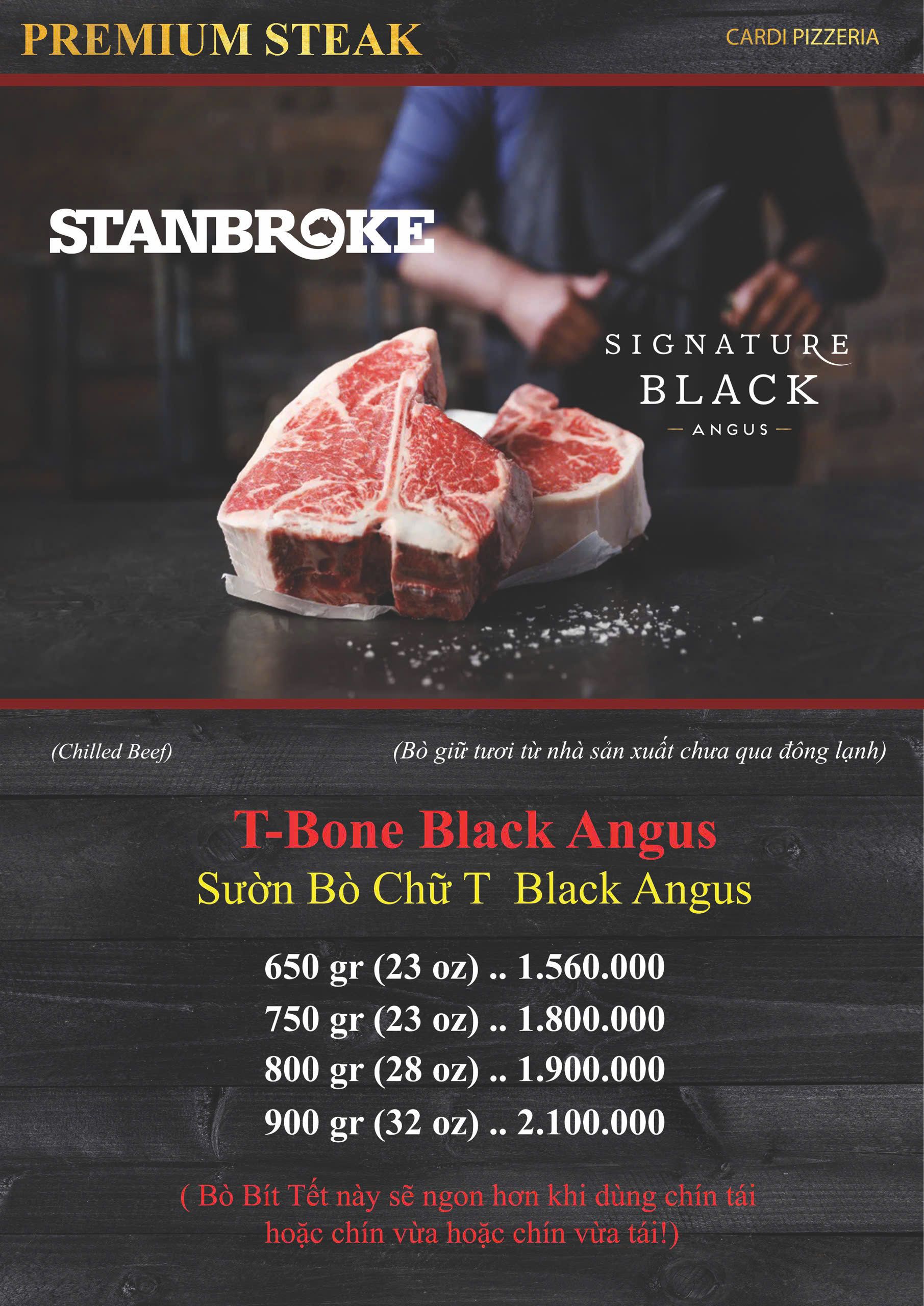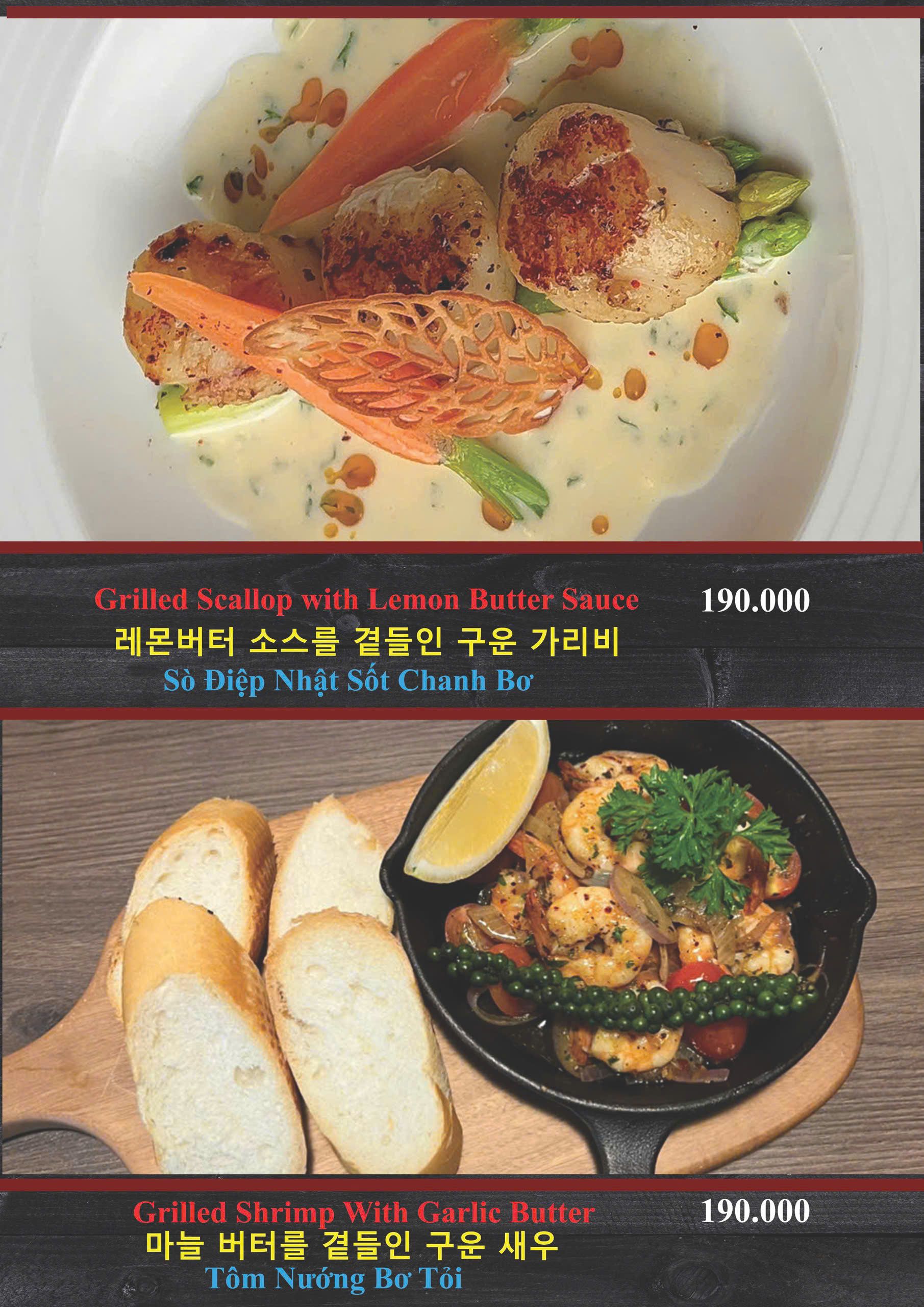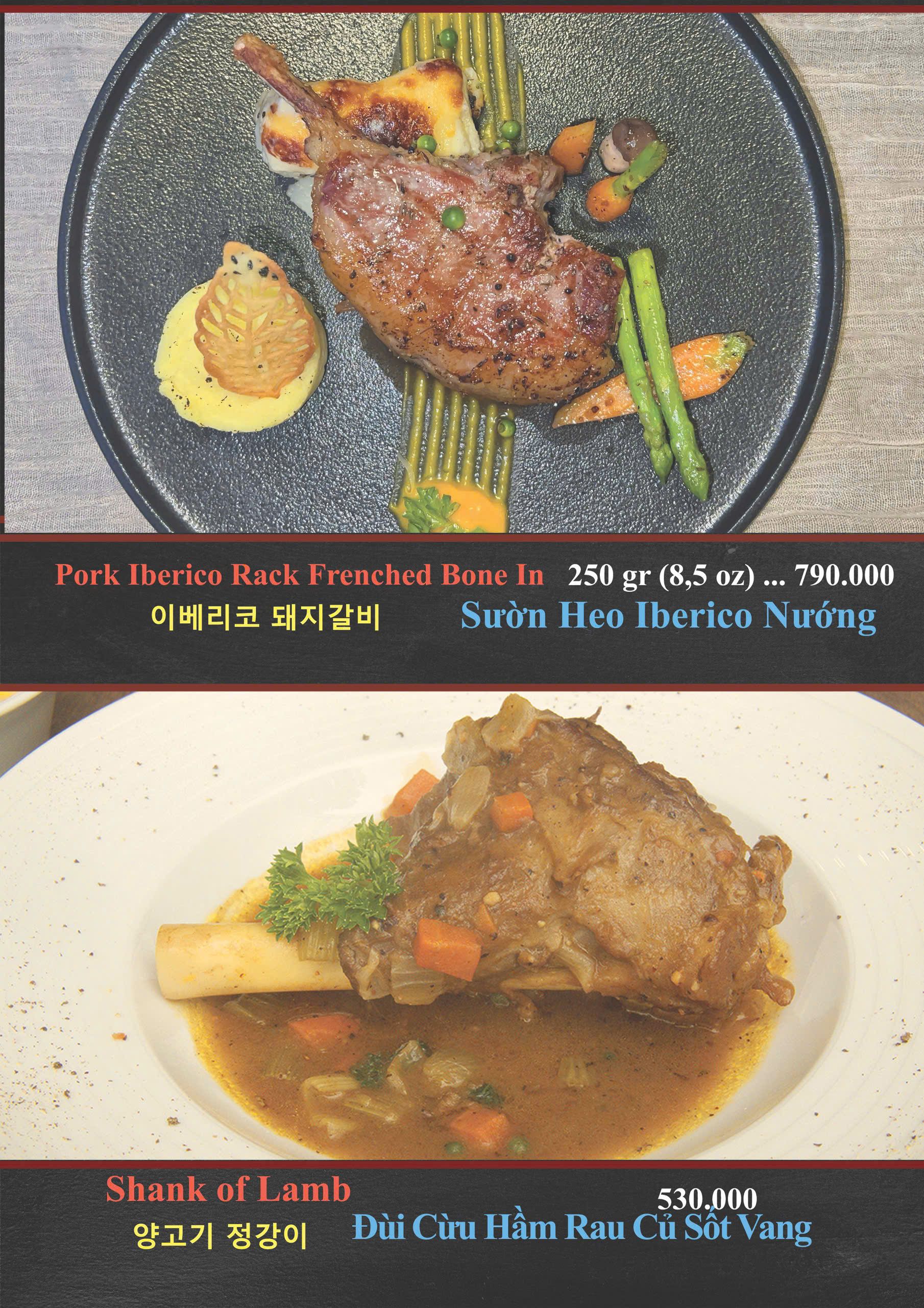 Tại đây, chúng tôi tự hào mang đến một thực đơn được tuyển chọn kỹ lưỡng — từ những phần steak thượng hạng, nguyên bản chất lượng quốc tế, đến các món ăn và thức uống đa dạng phù hợp cho mọi trải nghiệm ẩm thực.