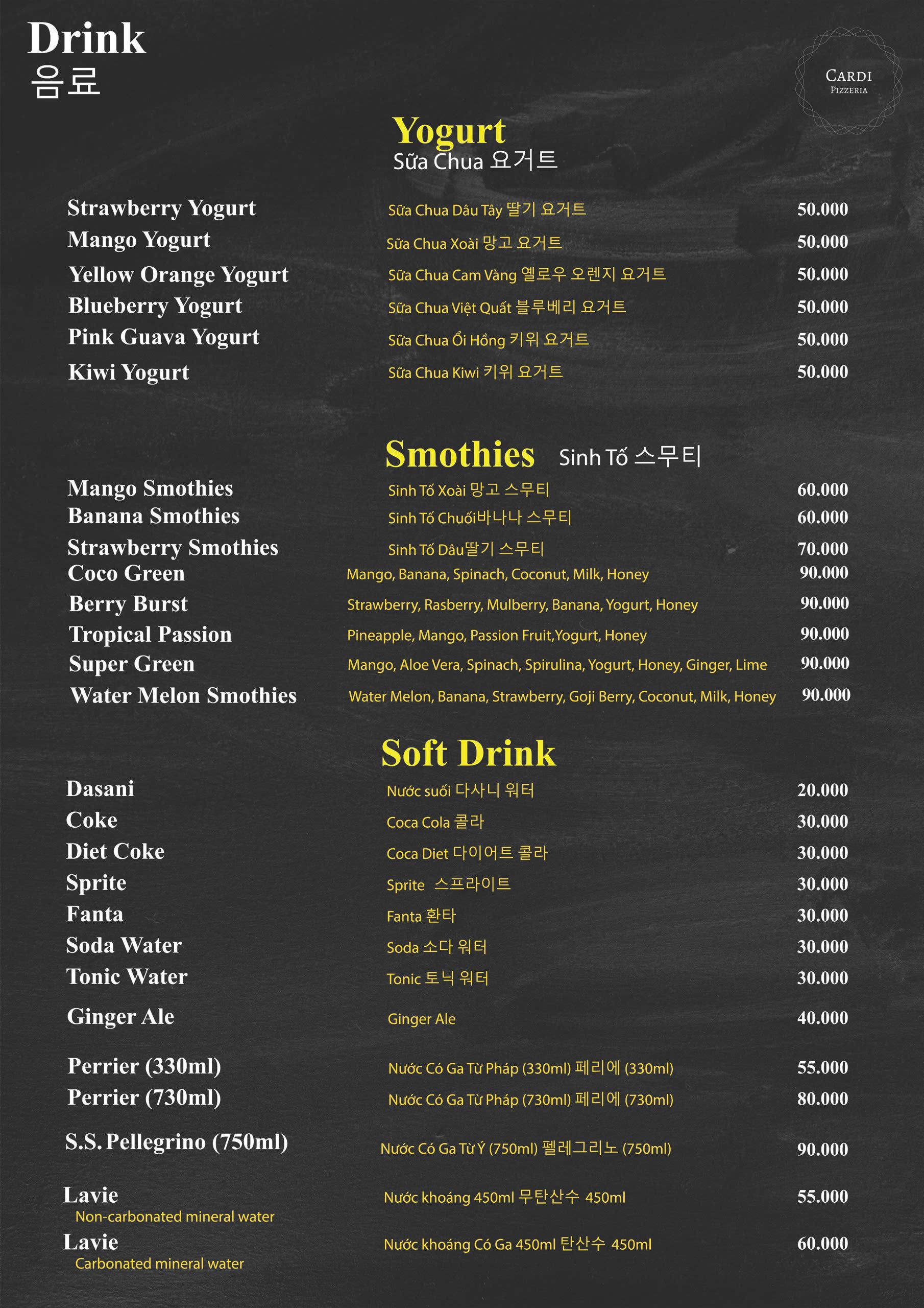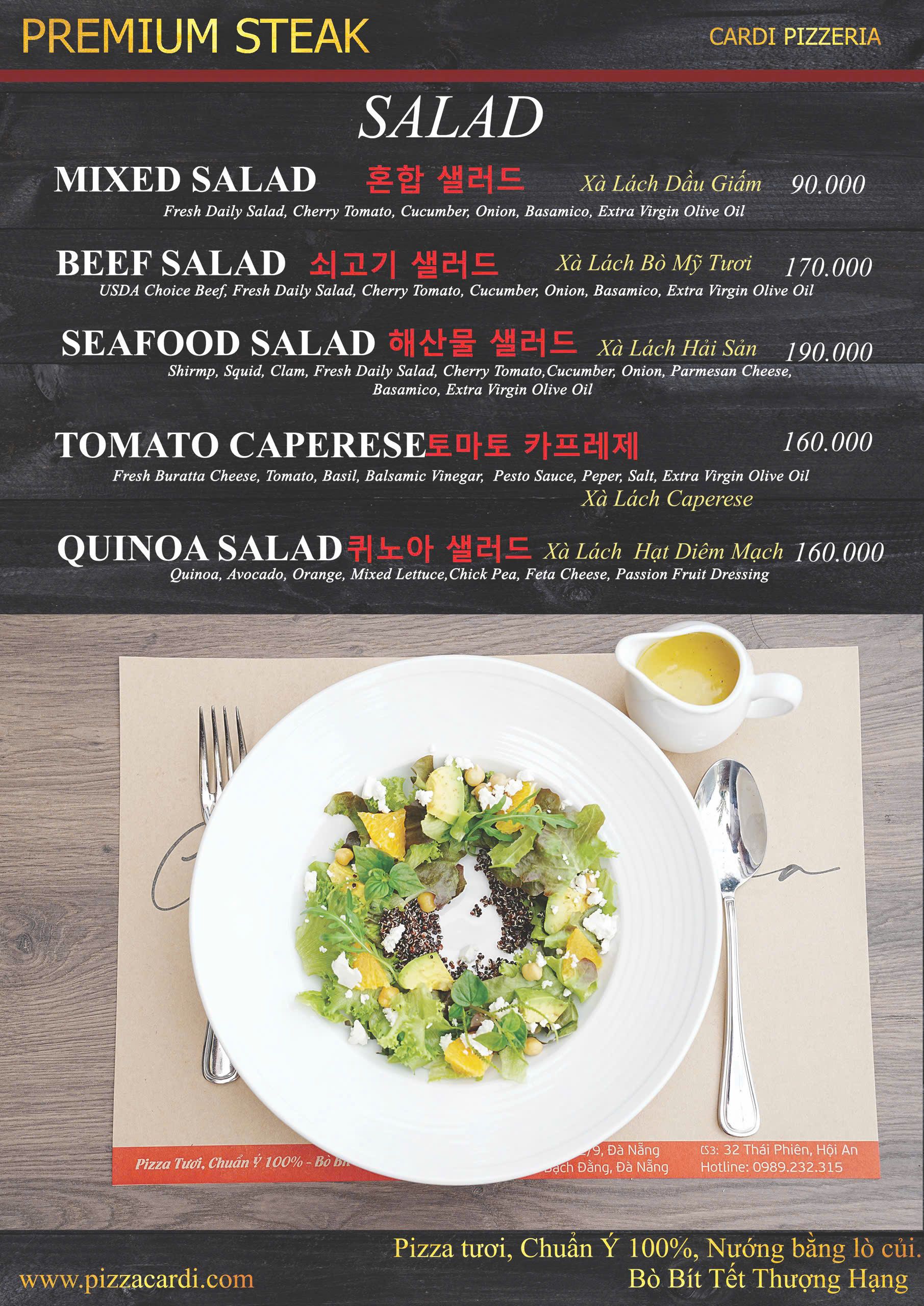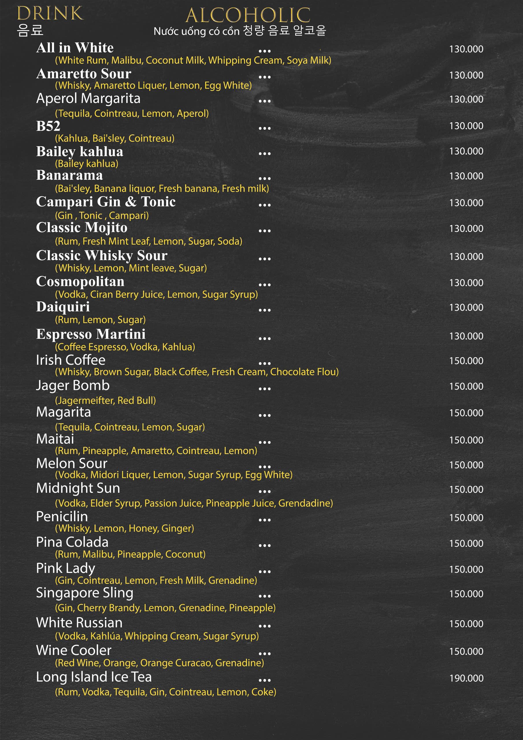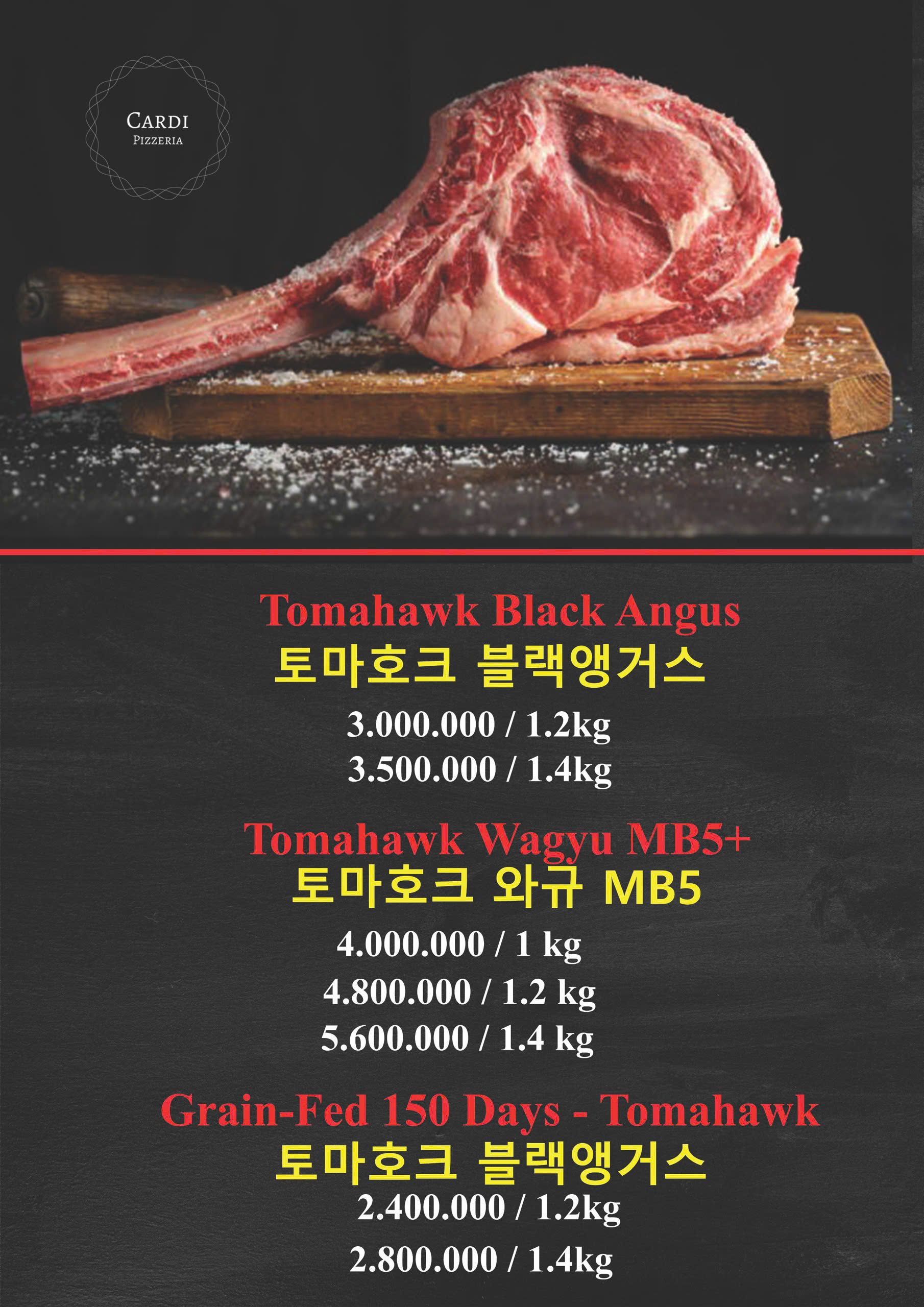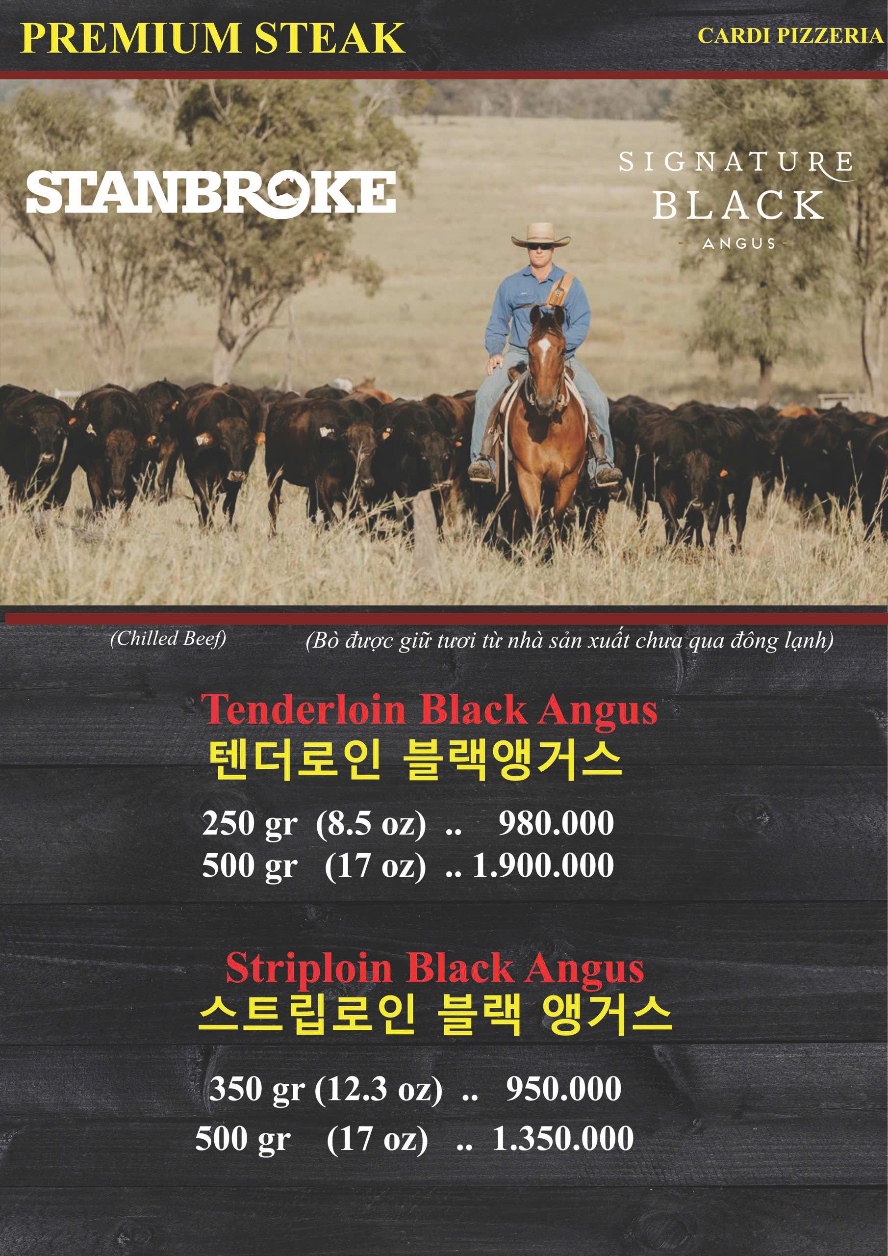 Tại đây, chúng tôi tự hào mang đến một thực đơn được tuyển chọn kỹ lưỡng — từ những phần steak thượng hạng, nguyên bản chất lượng quốc tế, đến các món ăn và thức uống đa dạng phù hợp cho mọi trải nghiệm ẩm thực.